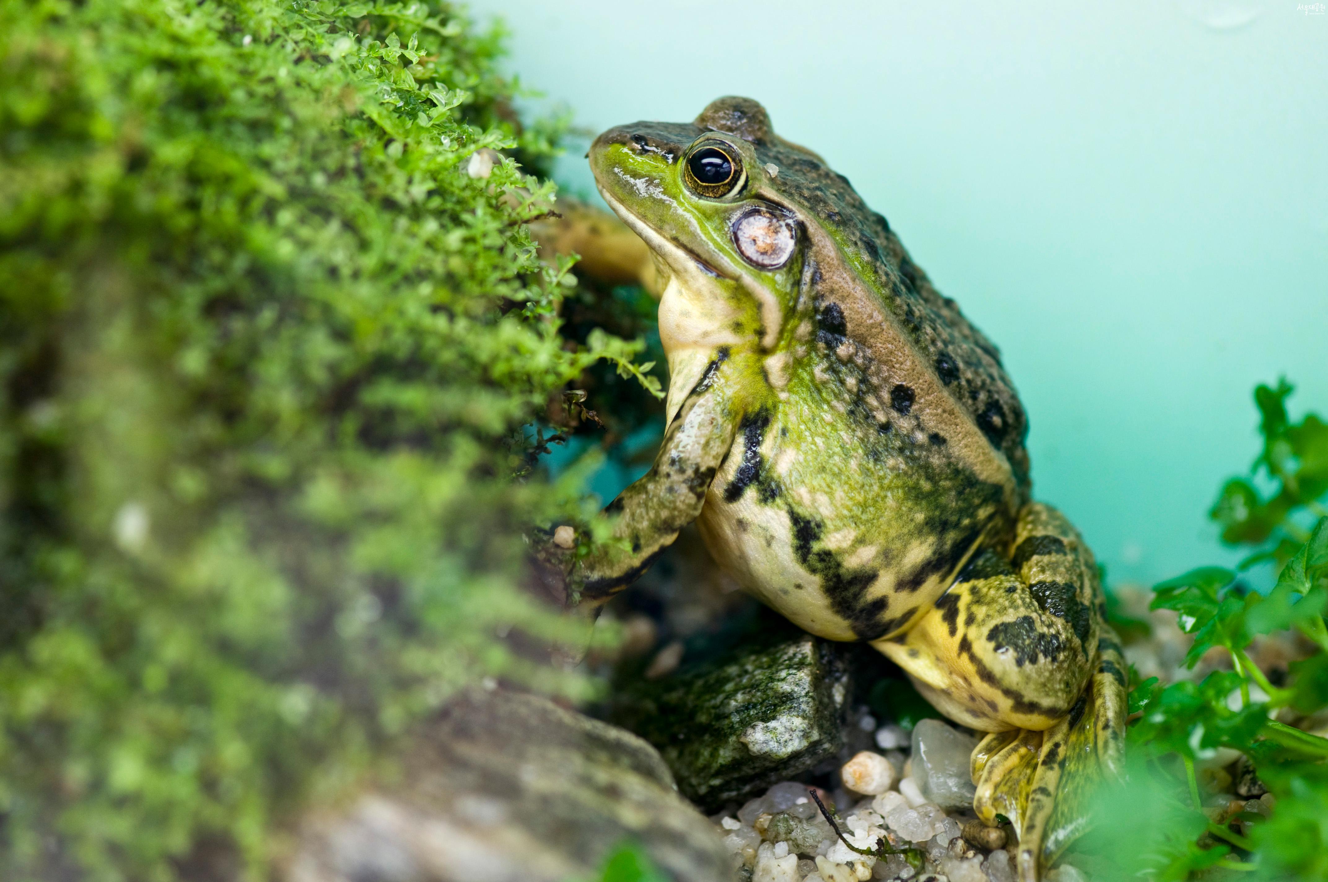 등의 무늬는 참개구리에 비해 밝은 녹색으로 증 중앙에 선이 없고, 등 측면으로 2개의 굵고 뚜렷한 금색의 융기선을 가지고 있다. 개체에 따라 융기선의 굵기에 변이가 있다. 우리나라 고유종이다.