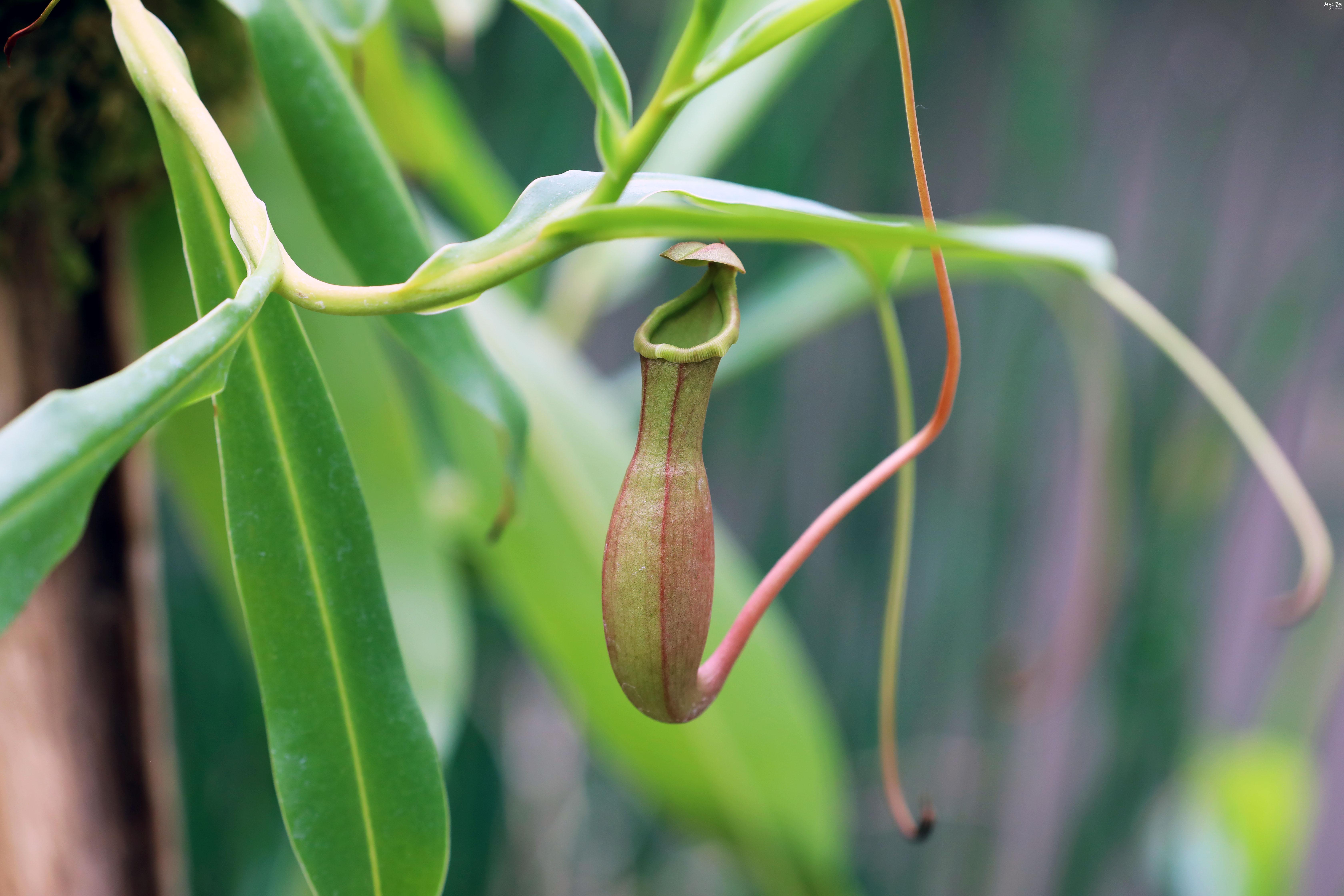 네펜데스는 척박한 토양에서 살기 위해 부족한 양분을 곤충으로 보충하는 식충식물입니다. 벌레를 유인하고 소화하는 덫인 포충낭은 잎에 변한 것으로, 입술 주변에 꿀이 나오는 분비샘이 있어 벌레를 유인합니다. 꿀은 마취효과가 있어서 꿀을 먹은 곤충들이 중심을 잃고 포충낭 안으로 떨어지게 되는데, 이 포충낭에 곤충이 빠지면 절대 빠져나올 수 없습니다. 포충낭 속에는 소화액이 분비되어 있는데, 포충낭의 뚜껑이 열렸을 때는 중성이지만, 곤충이 잡히면 산성으로 변화되어 소화와 흡수를 돕습니다. 포충낭 위쪽에 있는 뚜껑은 빗물을 막아줘 소화액이 희석되지 않게 도와줍니다. 포충낭은 엄지손가락만 한 것부터 50cm 이상까지 크기가 다양한데, 큰 포충낭에는 개구리, 쥐, 새 등 작은 동물이 빠지기도 합니다. 포충낭의 수명은 잎보다 짧은데, 포식 활동을 많이 하거나 주변 상태에 따라 더 짧아지기도 합니다.