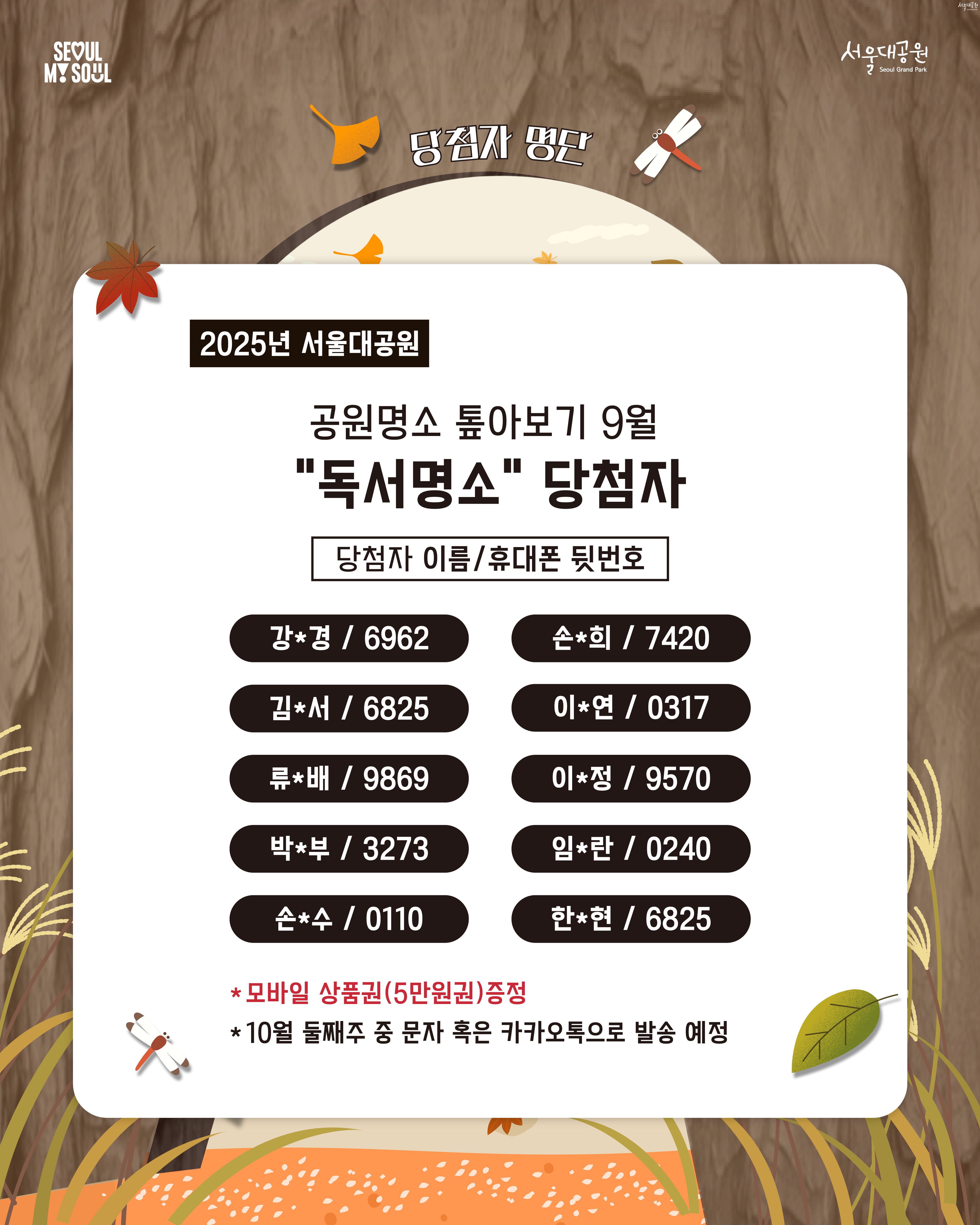 (10월 둘째주 중 문자 혹은 카카오톡으로 발송 예정)