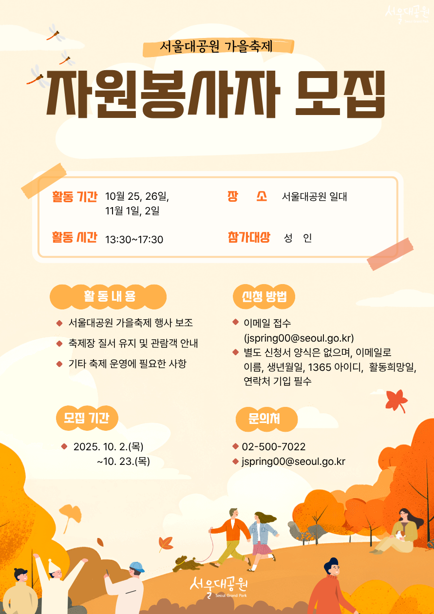 [자원봉사자 모집] 서울대공원 가을축제 행사 운영 보조 등
